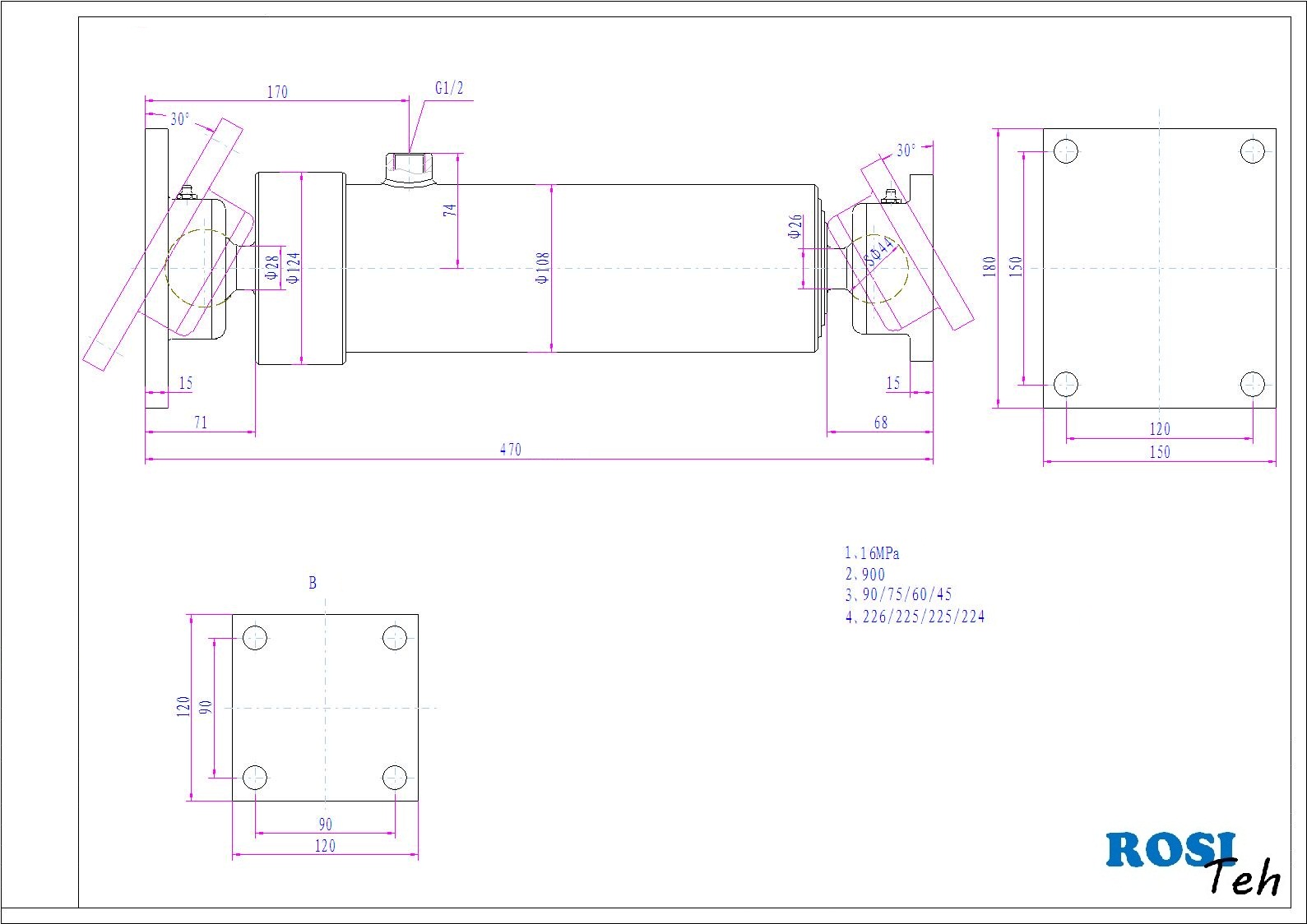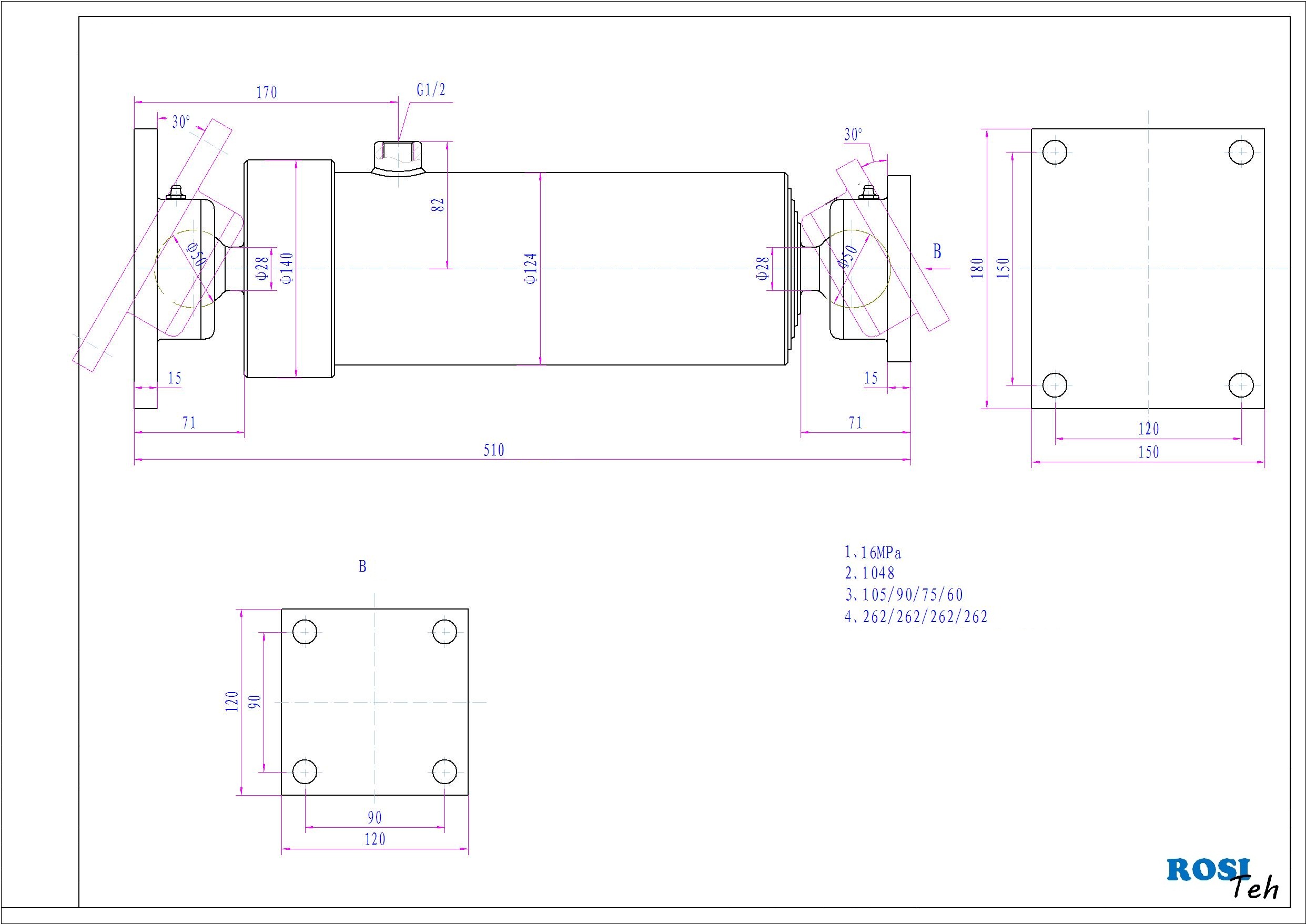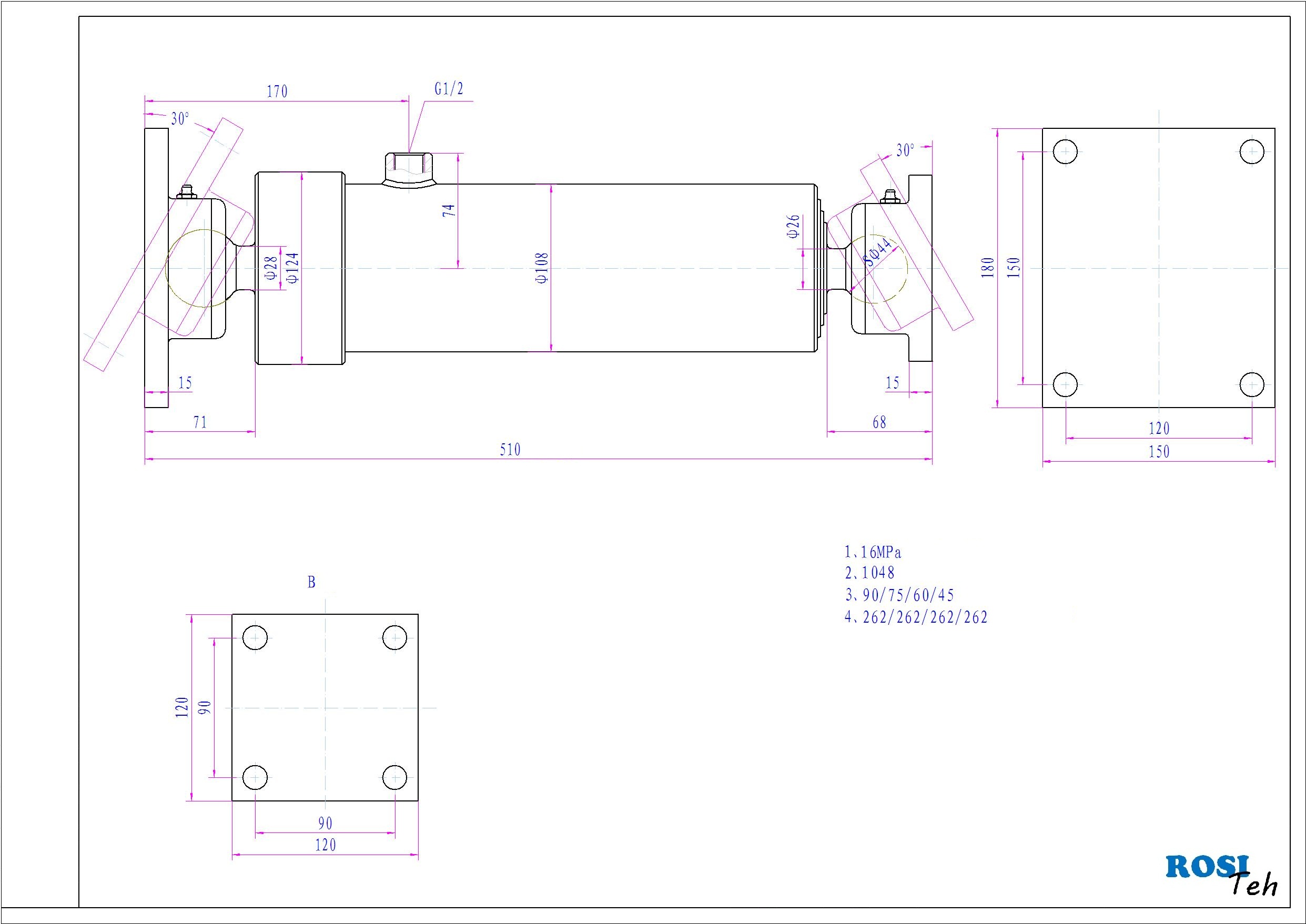 4 - stopenjski kiper cilinder z montažno ploščo na obeh straneh